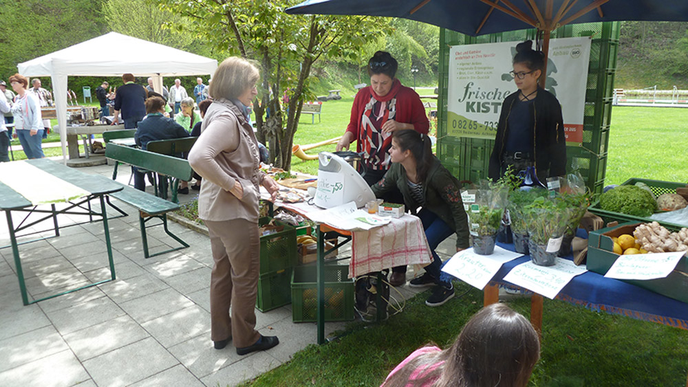 Die Alphorngruppe Langholz eröffnete das Fest musikalisch. Bei herrlichem Sonnenschein präsentierte sich die Therme mit dem Gesundheitstag und interessanten Informationsständen von der AOK, Düfte von der Aromaexpertin Gerti Schmid, "mit allen Sinnen genießen" vom Kompetenzzentrum des Amtes für Ernährung aus Mindelheim, frische Smoothies von der "frischen Kiste" aus Bedernau und Infos von der Wassertankstelle und Anwendung von Wickeln und Güssen ! Zum Mittagessen wurden Steckerlfische vom Fischereiverein frisch vom Grill serviert.