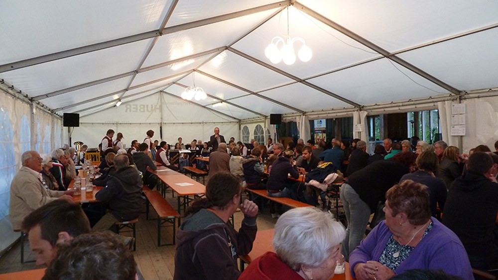 Das abwechslungsreiche Abendprogramm im Festzelt mit der Musikapelle Bedenau, der Auftritt der Showtanzgruppe Bedernau mit dem eigens eingeübten Tanz "Besuch im Thermal" begeisterten die Besucher. Unterhaltsam war der Auftritt von Richard und Thomas Zedelmeier die sich verkleidet als "Marie und Traudl" über einen Thermenbesuch unterhielten. Am Sonntag wurden die zahlreichen Frühschoppenbesucher mit Musik und Gesang von den "Schmidde Musikanten" unterhalten.